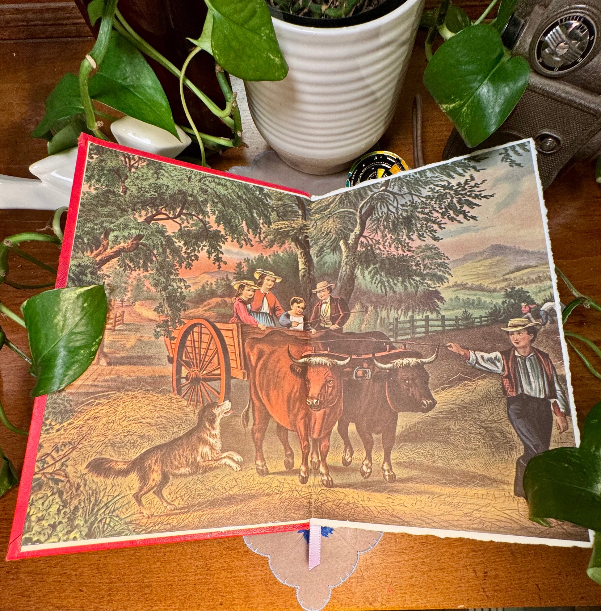 Inside the front cover, you'll find an original Currier & Ives print pulled from the 1952 edition of ‘Currier and Ives’ America’ – originally illustrated in the late 1800s. A little glimpse into the past, titled ‘Haying - Time: The Last Load’.