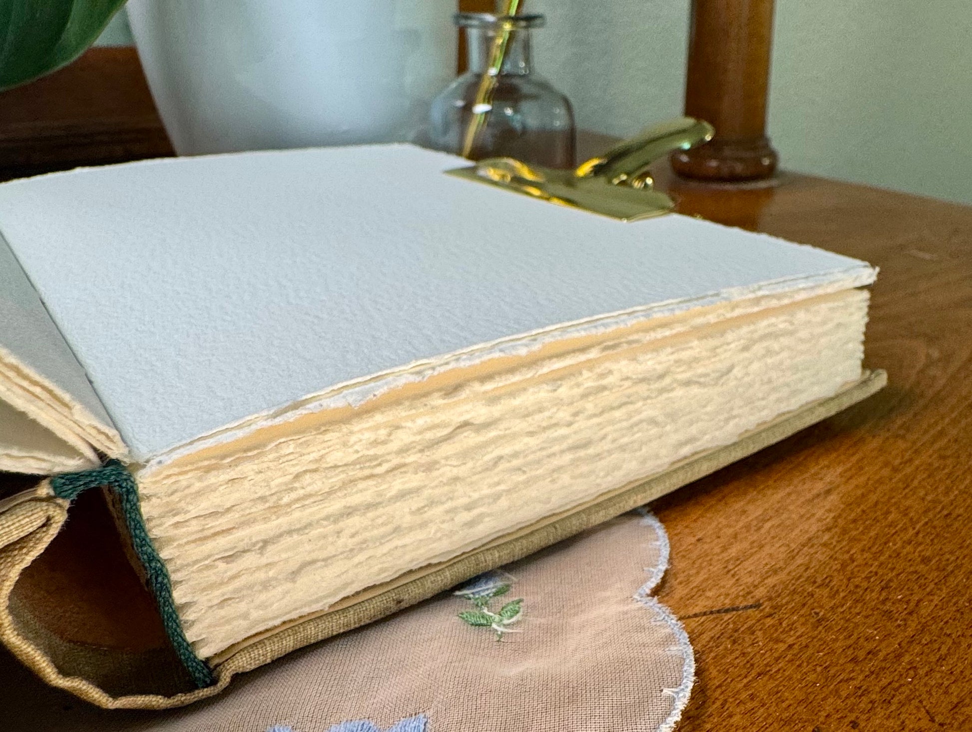 - Hand-torn deckled edges