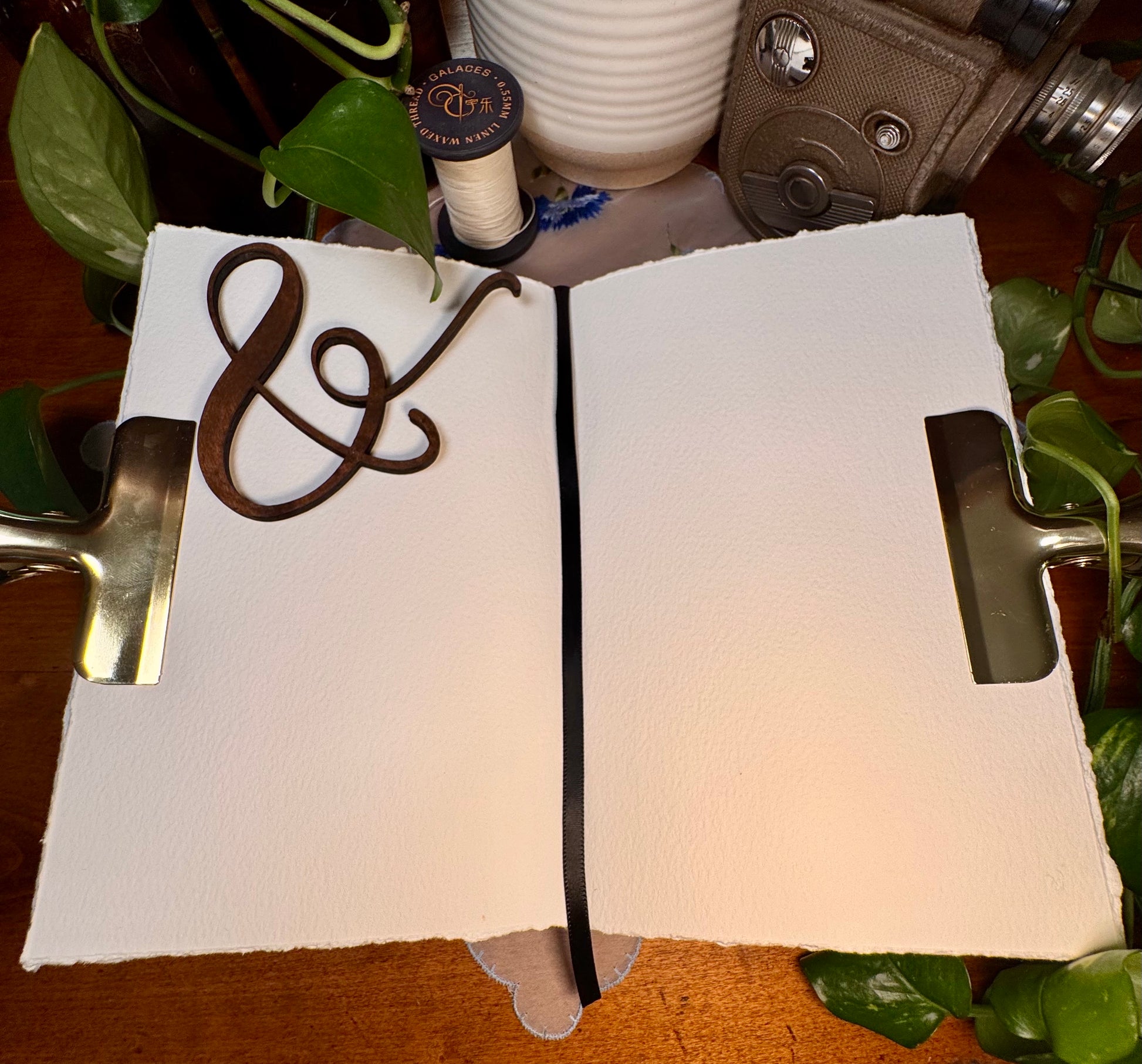 Pages are framed by Emma Lefebvre’s dreamy florals on textured cardstock – printed inside both covers, greeting your brush with beauty.